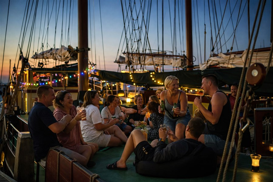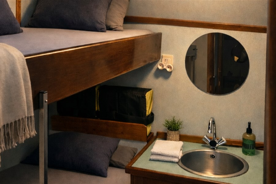 Einen Tag auf dem Wasser können Sie verlängern, indem Sie an Bord des Klippers Alliantie übernachten. In den Kabinen warten komfortable Betten auf Sie. Alle Kabinen sind mit Heizung und fließend Wasser ausgestattet.