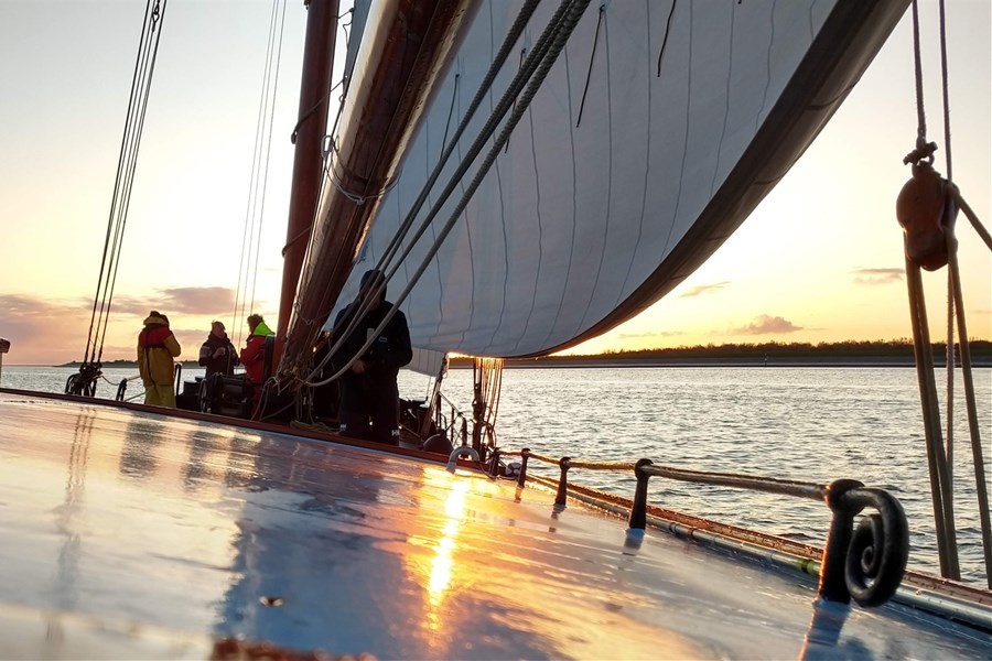Gehen Sie an Bord der sportlichen Tjalk Hollandia und erleben Sie aktives Segeln auf dem IJsselmeer, dem Wattenmeer und den friesischen Binnengewässern. Dieses robuste Plattbodenschiff verbindet gute Segeleigenschaften mit einem gemütlichen Interieur für Gruppen bis etwa 16 Personen. Die Crew bezieht Ihre Gruppe gerne beim Segeln ein, sodass Teamarbeit und gemeinsames Manövrieren im Mittelpunkt stehen. Der praktische Salon und die gut ausgestattete Kombüse bieten Platz für gemeinsame Mahlzeiten und entspannte Stunden. Dank ihres geringen Tiefgangs und sportlichen Charakters ist die Hollandia ideal für Gruppen, die aktiv segeln und ein besonderes Abenteuer erleben möchten.