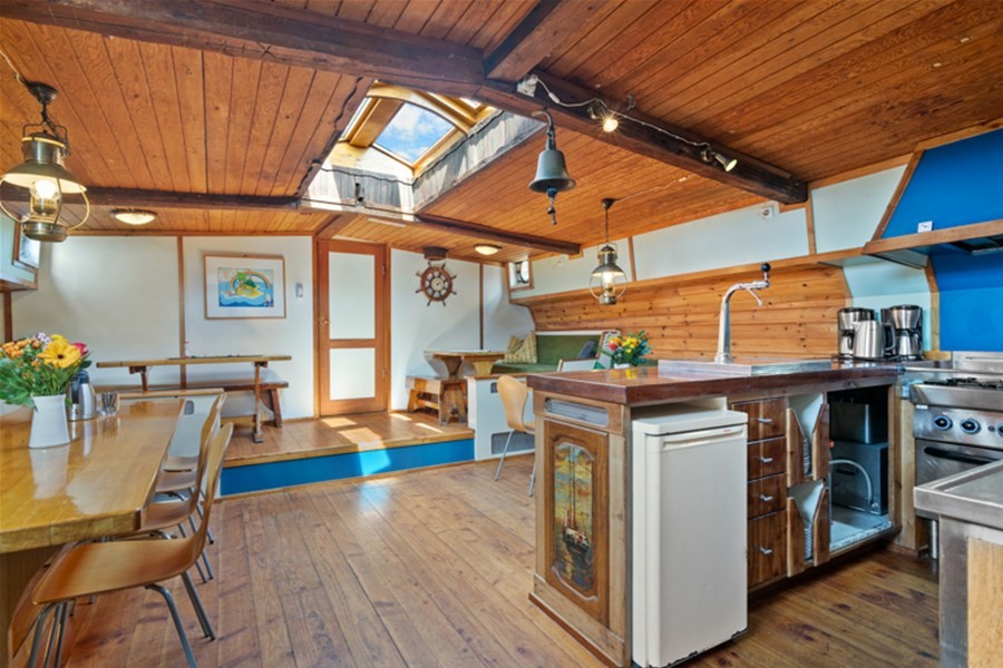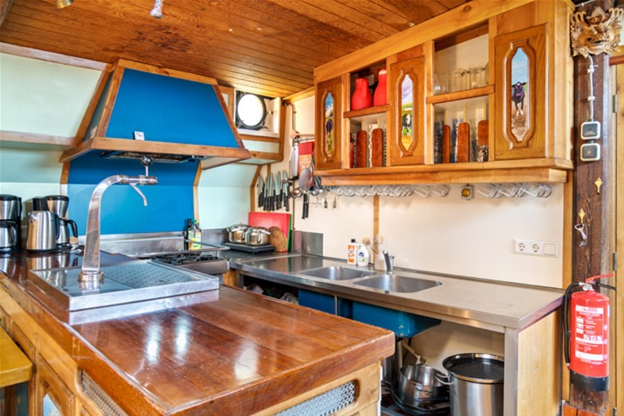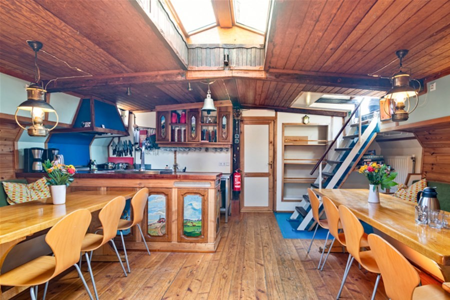 Unter Deck befindet sich ein großzügiger Salon, in dem die gesamte Gruppe zusammenkommen kann. Die helle Einrichtung und die komfortablen Sitzmöglichkeiten sorgen für eine angenehme Atmosphäre während des Aufenthalts. Der Salon eignet sich ideal für gemeinsame Mahlzeiten, Spiele oder einen entspannten Abend nach einem aktiven Segeltag. Die Kombüse ist vollständig ausgestattet und bietet ausreichend Möglichkeiten, Mahlzeiten für größere Gruppen zuzubereiten. Dadurch eignet sich die Jeppe van Schier sowohl für Tagesfahrten als auch für mehrtägige Reisen.