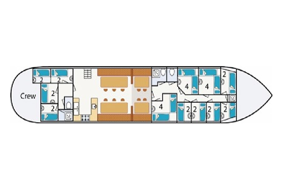 Die Jeppe van Schier verfügt über mehrere Kabinen mit komfortablen Schlafplätzen. Die Kabinen sind funktional eingerichtet und bieten ausreichend Platz für unterschiedliche Gruppenzusammensetzungen. Eine Heizung sorgt dafür, dass das Schiff auch in der Vor und Nachsaison angenehm ist. An Bord befinden sich sanitäre Anlagen, die zentral gelegen und gut erreichbar sind. Dies trägt zu einem komfortablen Aufenthalt während des Törns bei.