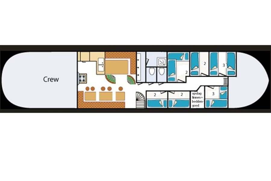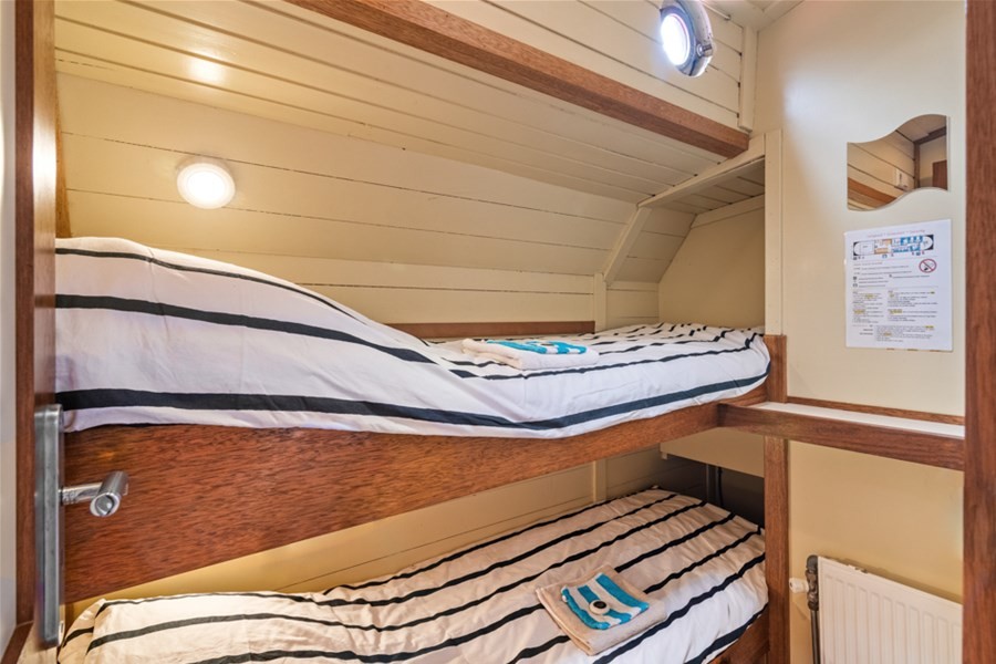 Die Vrouwezand verfügt über mehrere Kabinen mit komfortablen Schlafplätzen. Die Kabinen sind funktional eingerichtet und bieten ausreichend Platz für unterschiedliche Gruppenzusammensetzungen. Eine Heizung sorgt dafür, dass das Schiff auch in der Vor und Nachsaison angenehm ist. An Bord befinden sich sanitäre Anlagen, die zentral gelegen und gut erreichbar sind. Dies trägt zu einem komfortablen Aufenthalt während des Törns bei.